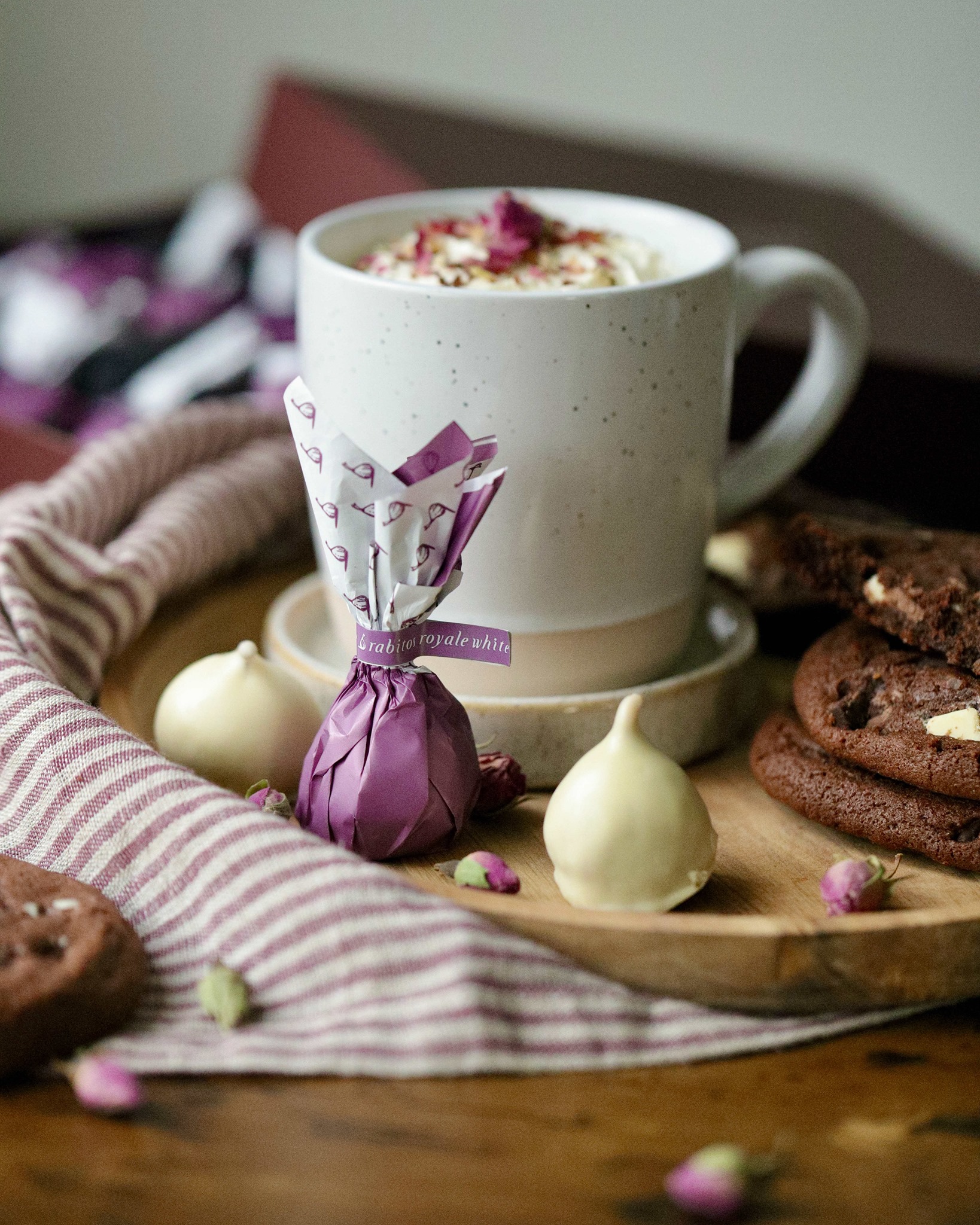 西班牙頂級無花果松露白可可 將松露白巧克力內餡沾抹上微微的草莓,塞入整顆地中海沿岸盛產的無花果乾,外層再淋上一層香濃的白可可,這前所未有的幸福口感將席捲而來顛覆你的味蕾。
