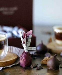 西班牙頂級無花果黑松露可可 將松露巧克力內餡沾抹上微微的白蘭地,並塞入整顆地中海沿岸盛產的無花果乾,外層再淋上一層香濃的黑可可,這前所未有的幸福口感將席捲而來顛覆你的味蕾